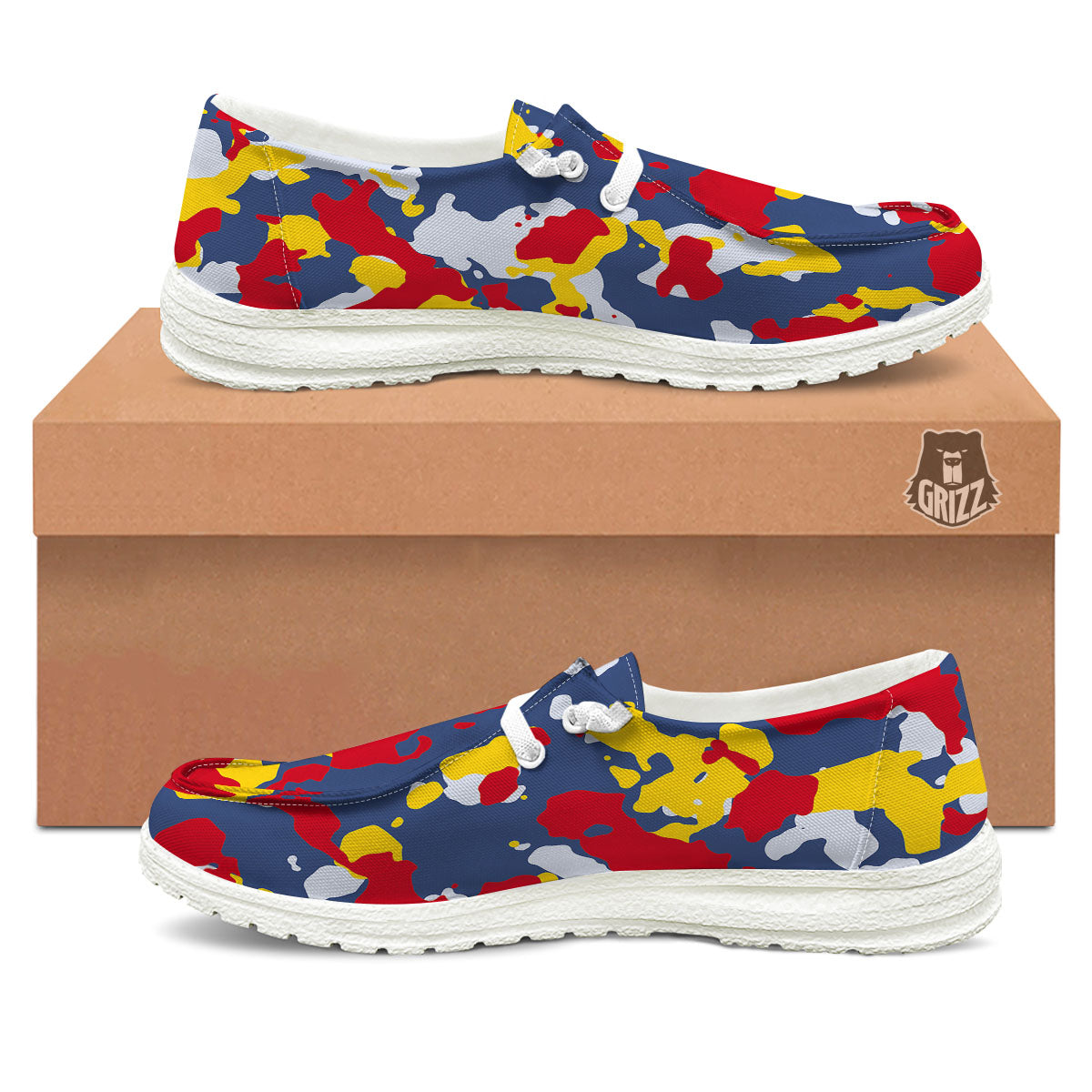 Looking for a unique Loafers? Check out our Yellow Red And Blue Camouflage Print White Loafers at Grizzshopping. Our Loafers are handcrafted to the highest quality standards that custom made for you Lightweight construction with breathable mesh fabric for maximum comfort and performance.