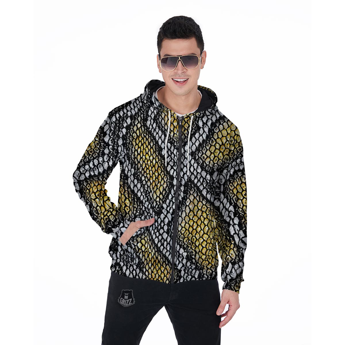 Looking for a unique Zip Up Hoodie? Check out our Yellow Snakeskin print Men's Zip Up Hoodie at Grizzshopping. Our Zip Up Hoodie are handcrafted to the highest quality standards that custom made for you