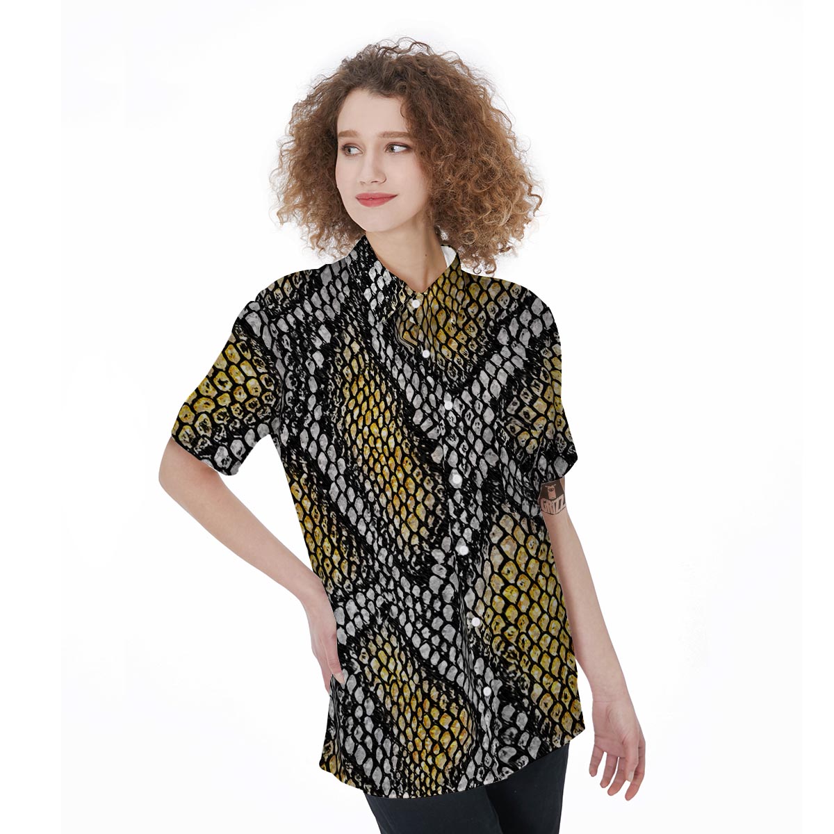 Yellow Snakeskin print Women's Short Sleeve Shirts