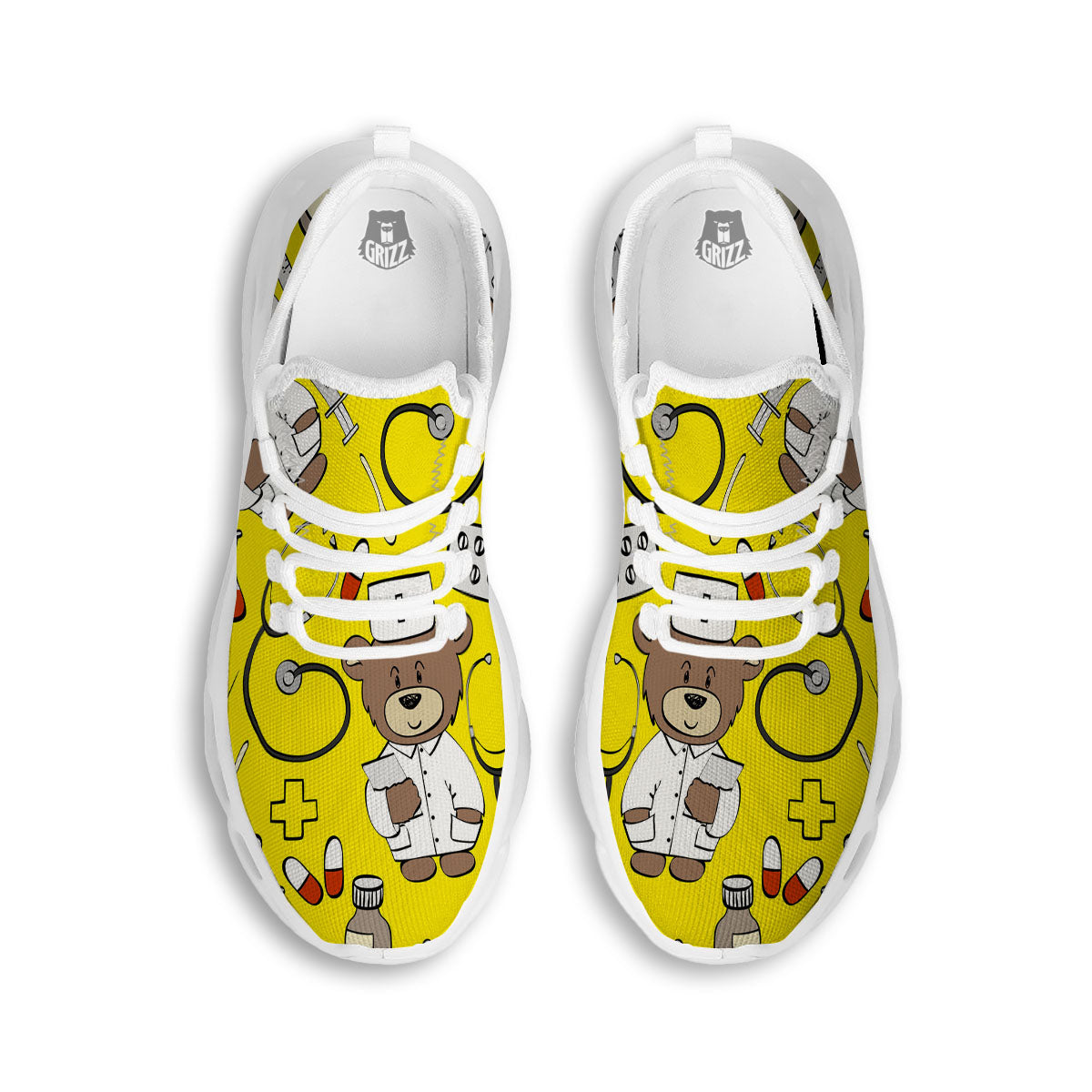 Looking for unique running shoes? Check out our Yellow Teddy Bear Nurse White Running Shoes at Grizzshopping. Our running shoes are handcrafted to the highest quality standards and custom-made for you