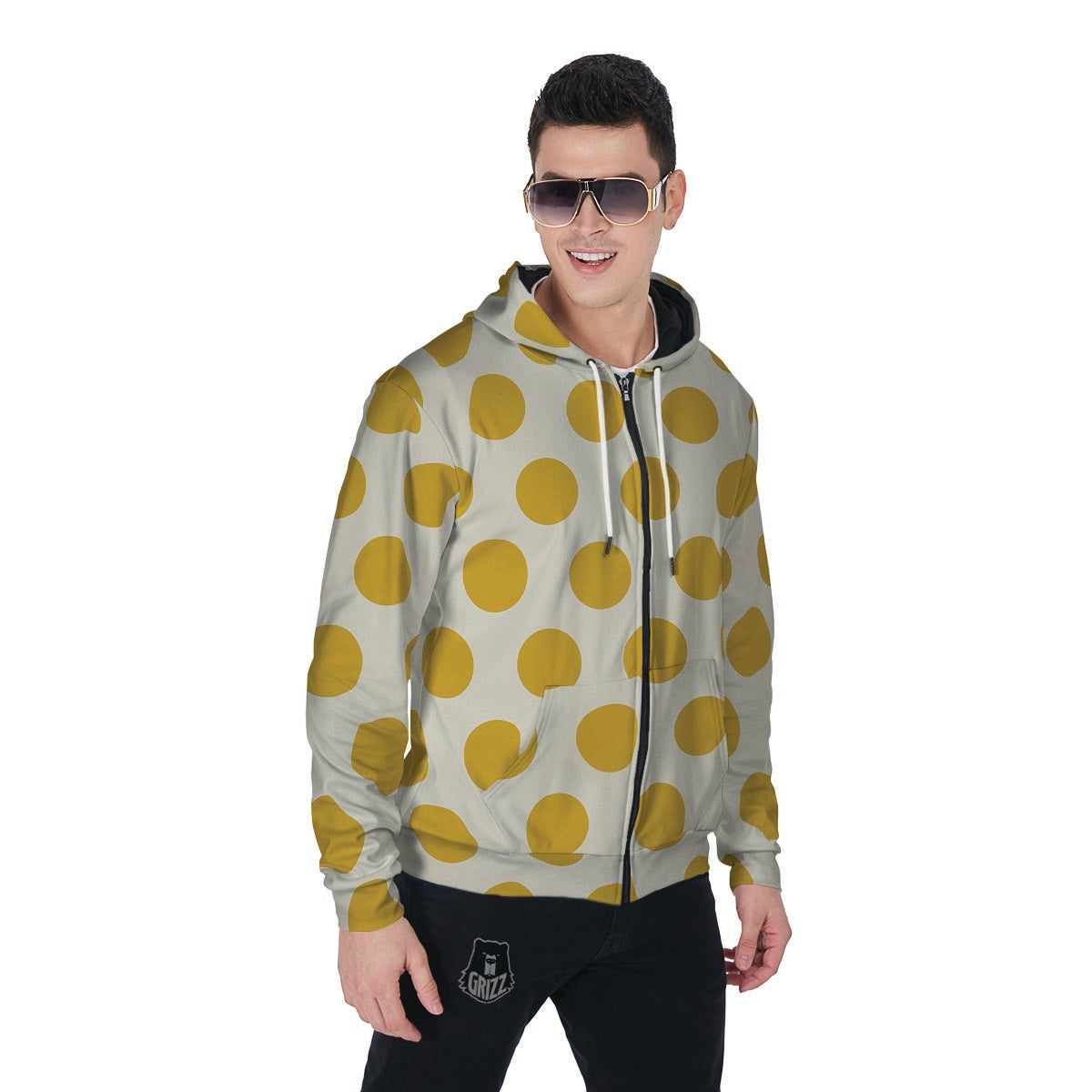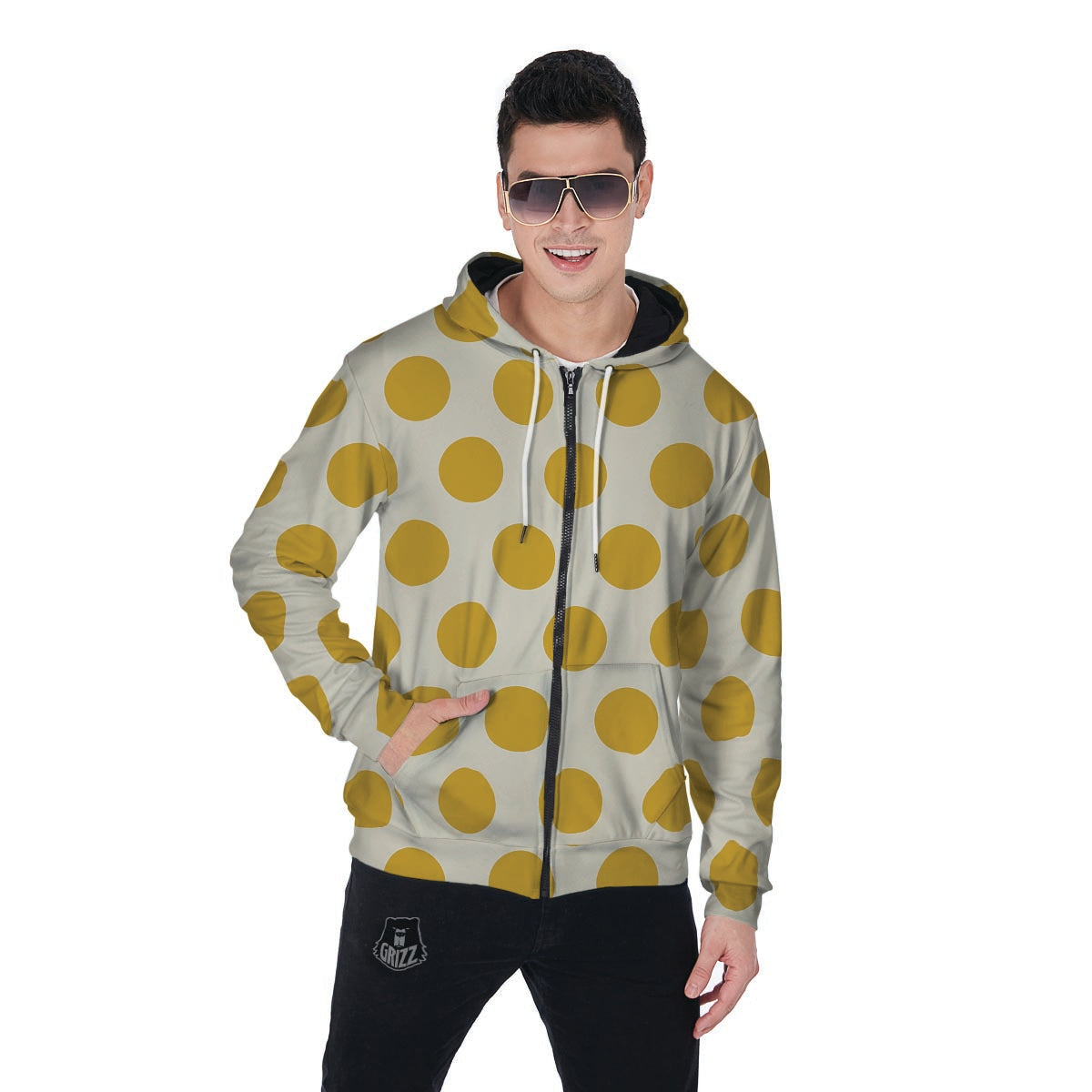 Looking for a unique Zip Up Hoodie? Check out our Yellow White Polka Dot Men's Zip Up Hoodie at Grizzshopping. Our Zip Up Hoodie are handcrafted to the highest quality standards that custom made for you