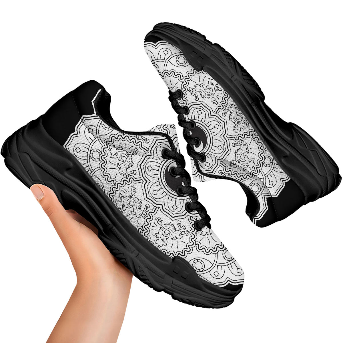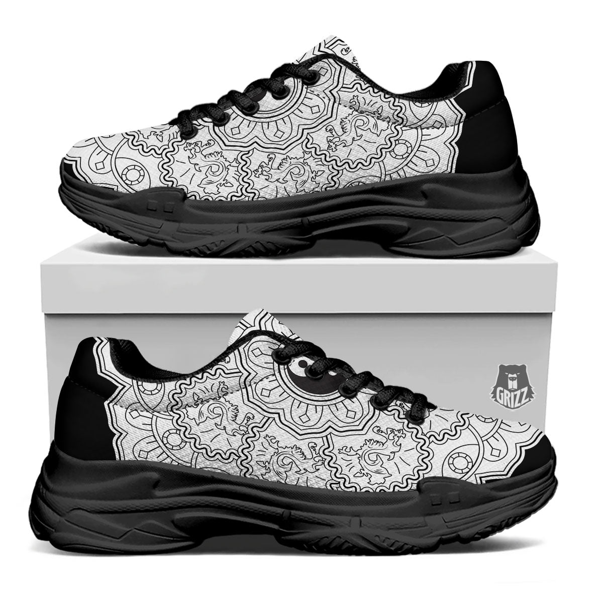 Yin Yang Mandala White And Black Print Black Chunky Shoes