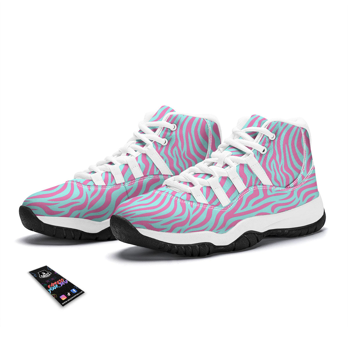 Zebra Stripes Blue And Pink Print White Bball Shoes