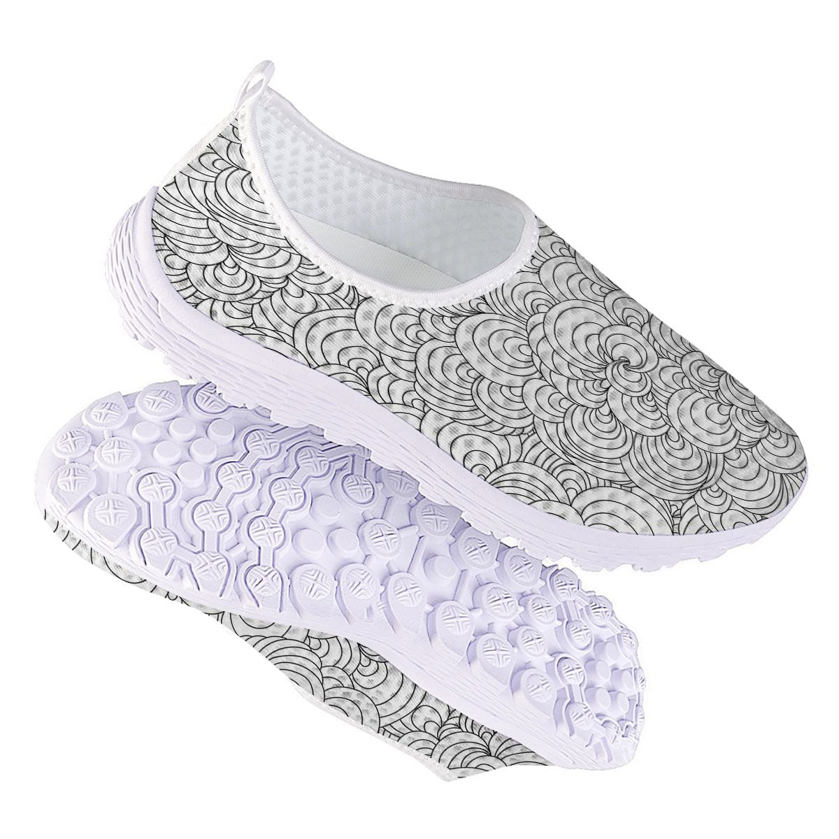 Zentangle White And Black Print Pattern Nurse Shoes