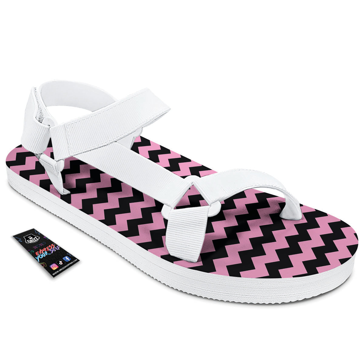 Zigzag Black And Pink Print Pattern White Open Toe Sandals