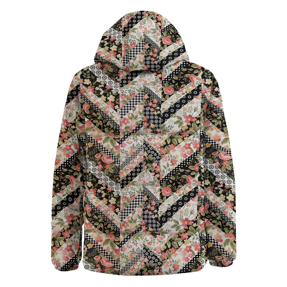 Zigzag Floral Patchwork Print Pattern Down Jacket