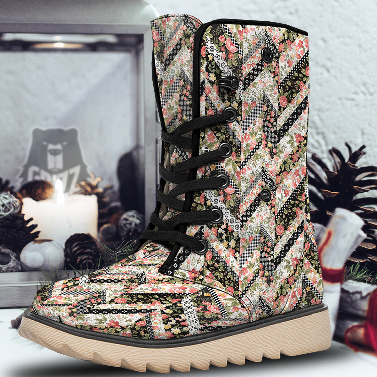 Looking for unique snow boots? Check out our Zigzag Floral Patchwork Print Pattern Snow Boots at Grizzshopping. Our snow boots are handcrafted to the highest quality standards that custom made for you