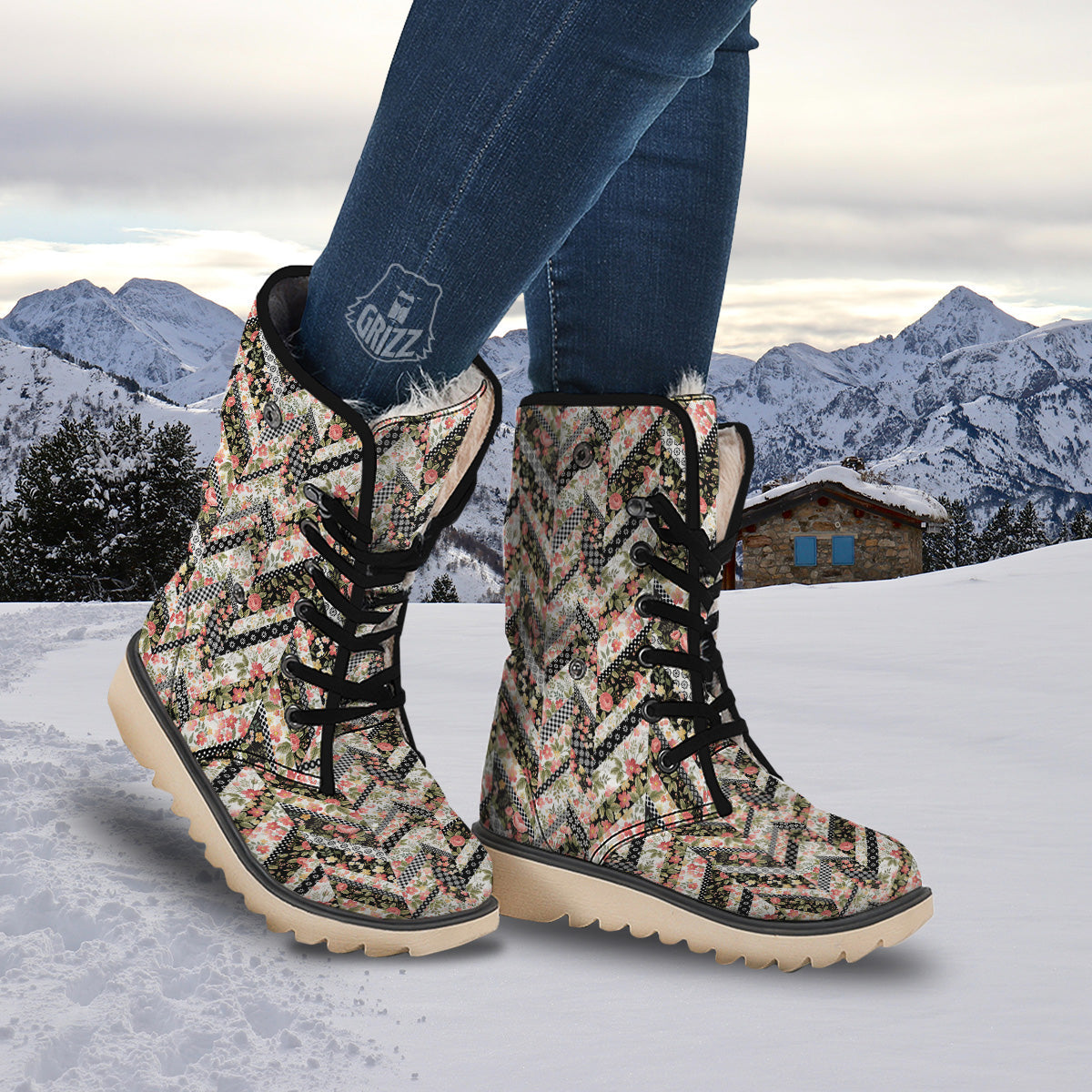 Zigzag Floral Patchwork Print Pattern Snow Boots