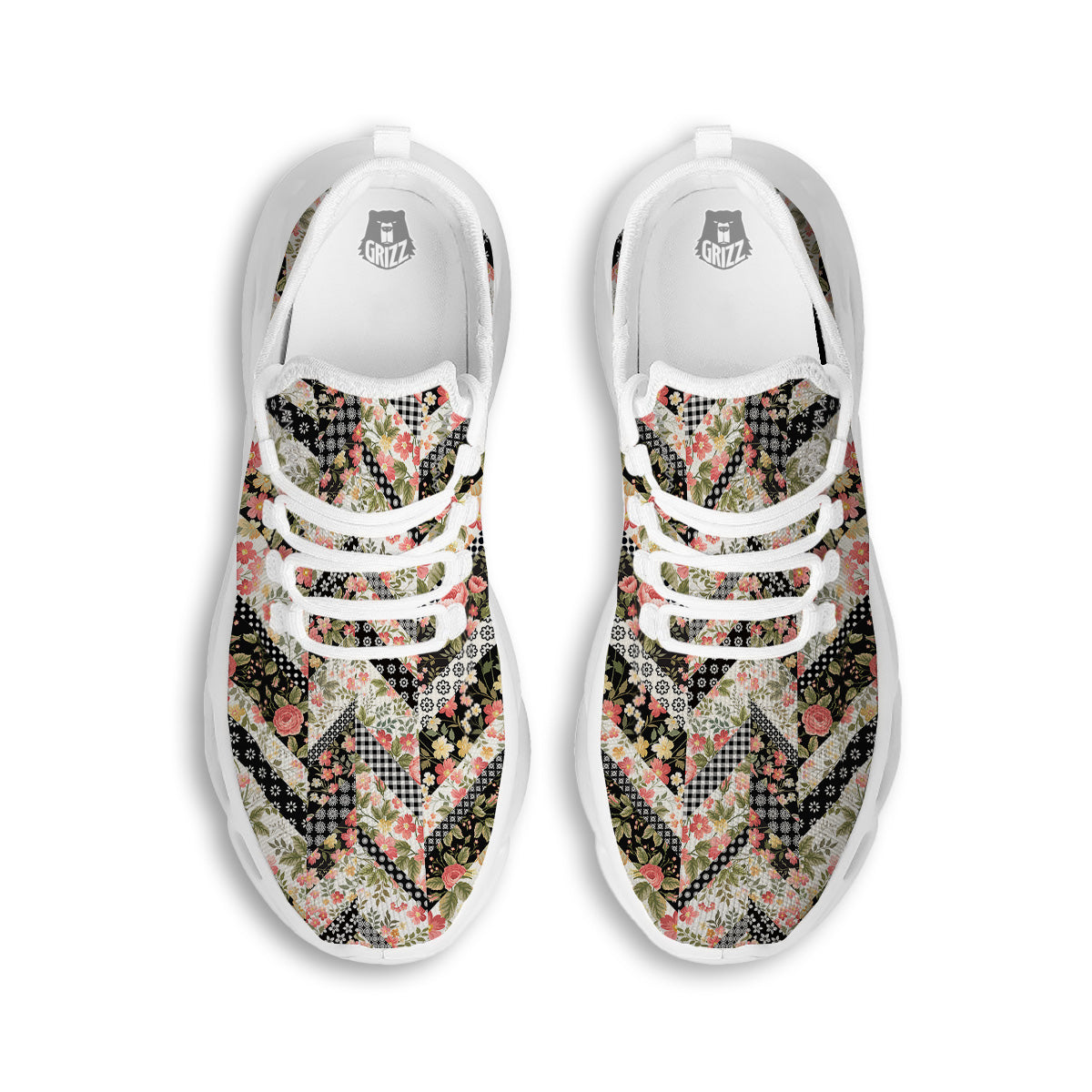 Zigzag Floral Patchwork Print Pattern White Running Shoes