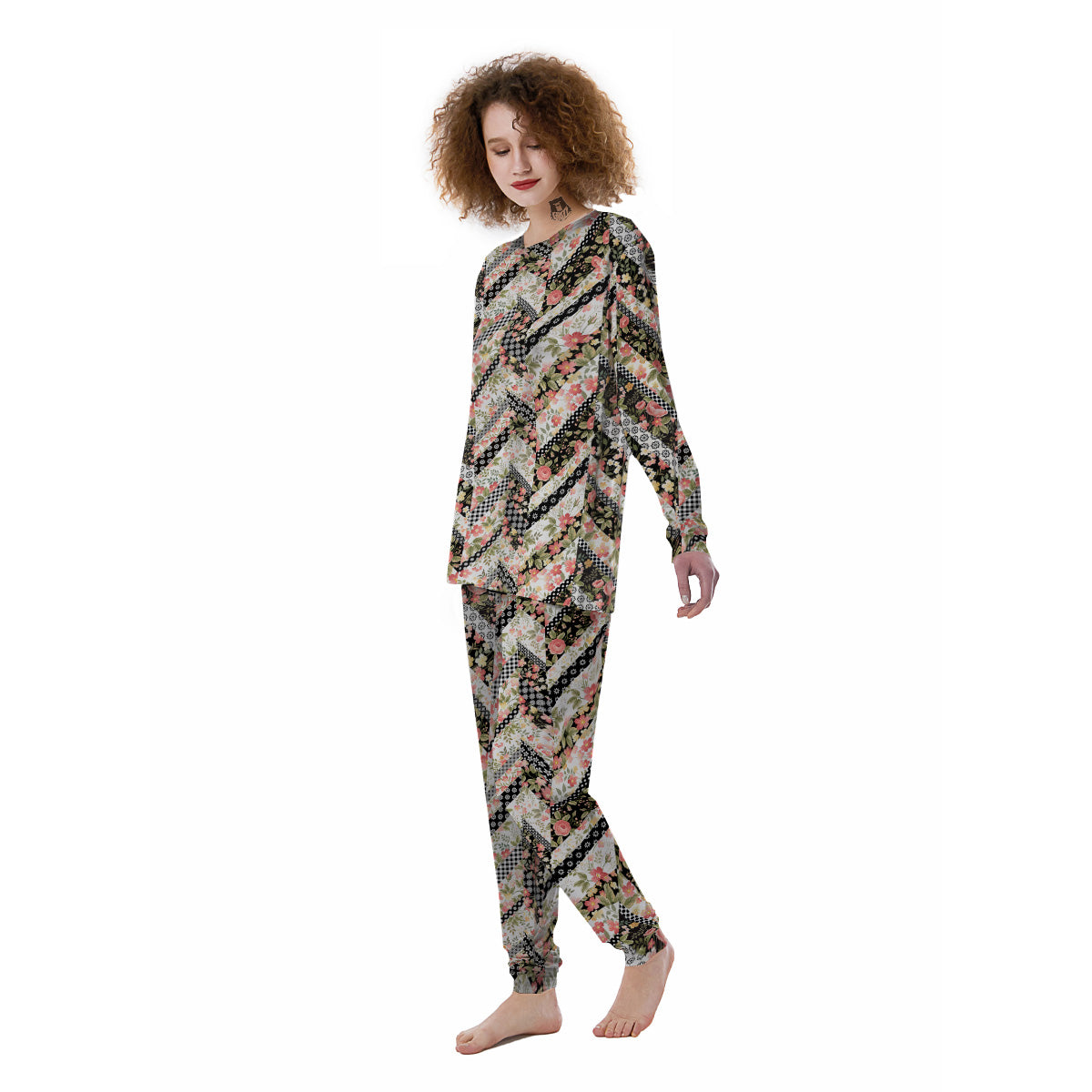 Zigzag Floral Patchwork Print Pattern Women's Pajamas