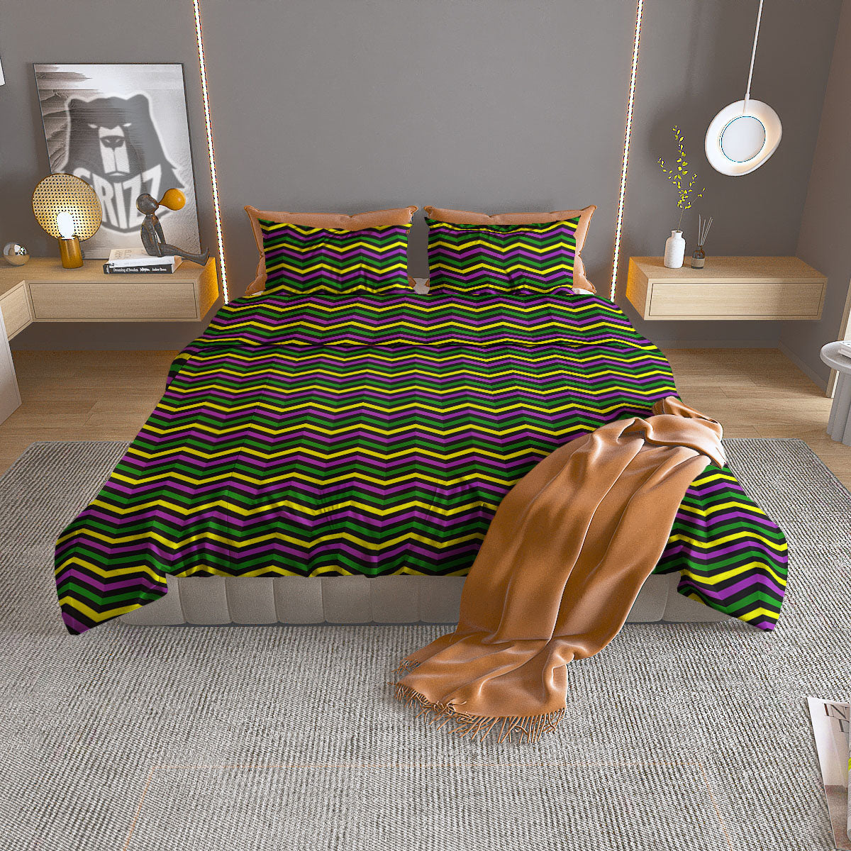 Zigzag Mardi Gras Print Pattern Duvet Cover Bedding Set