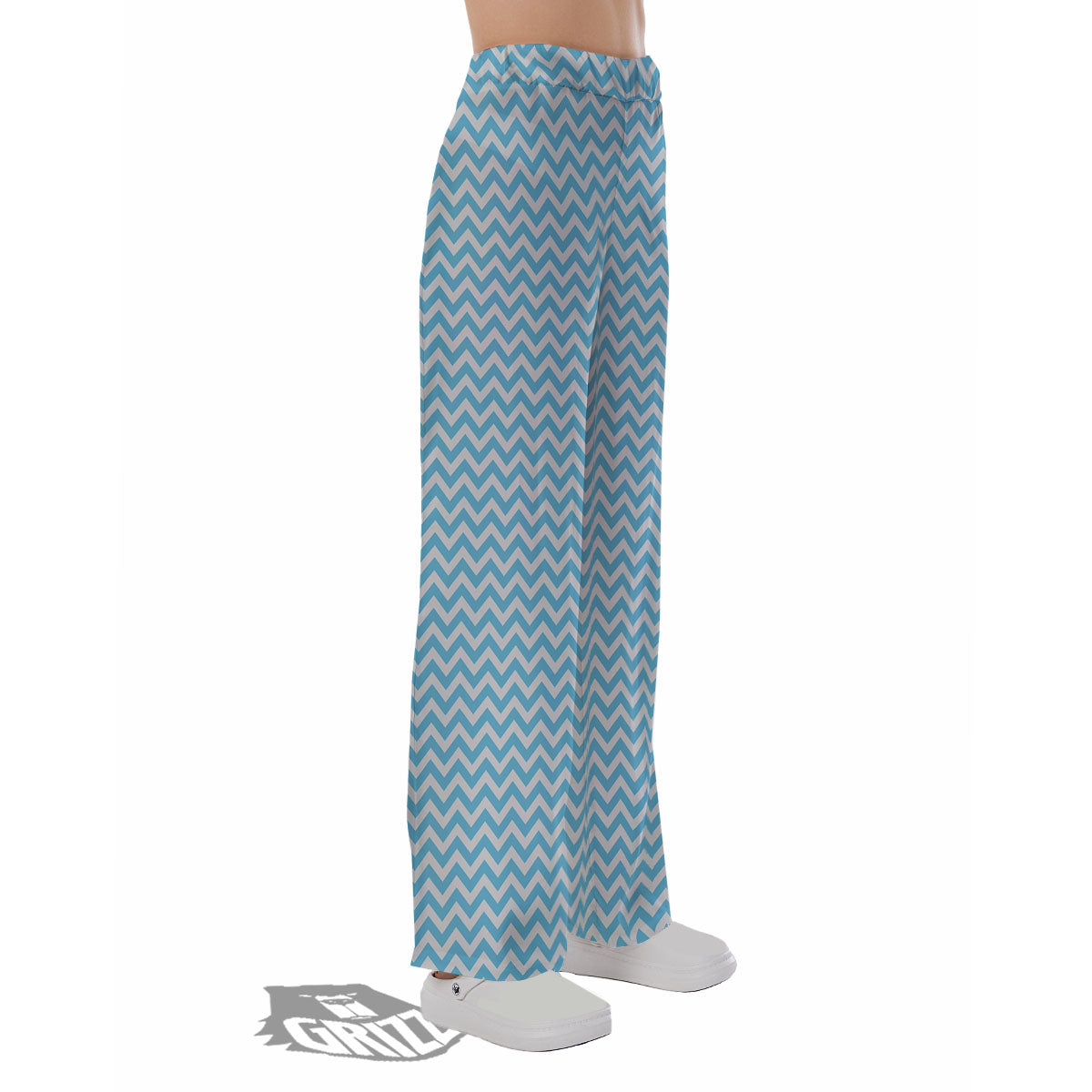 Zigzag White And Blue Print Pattern Pajama Pants
