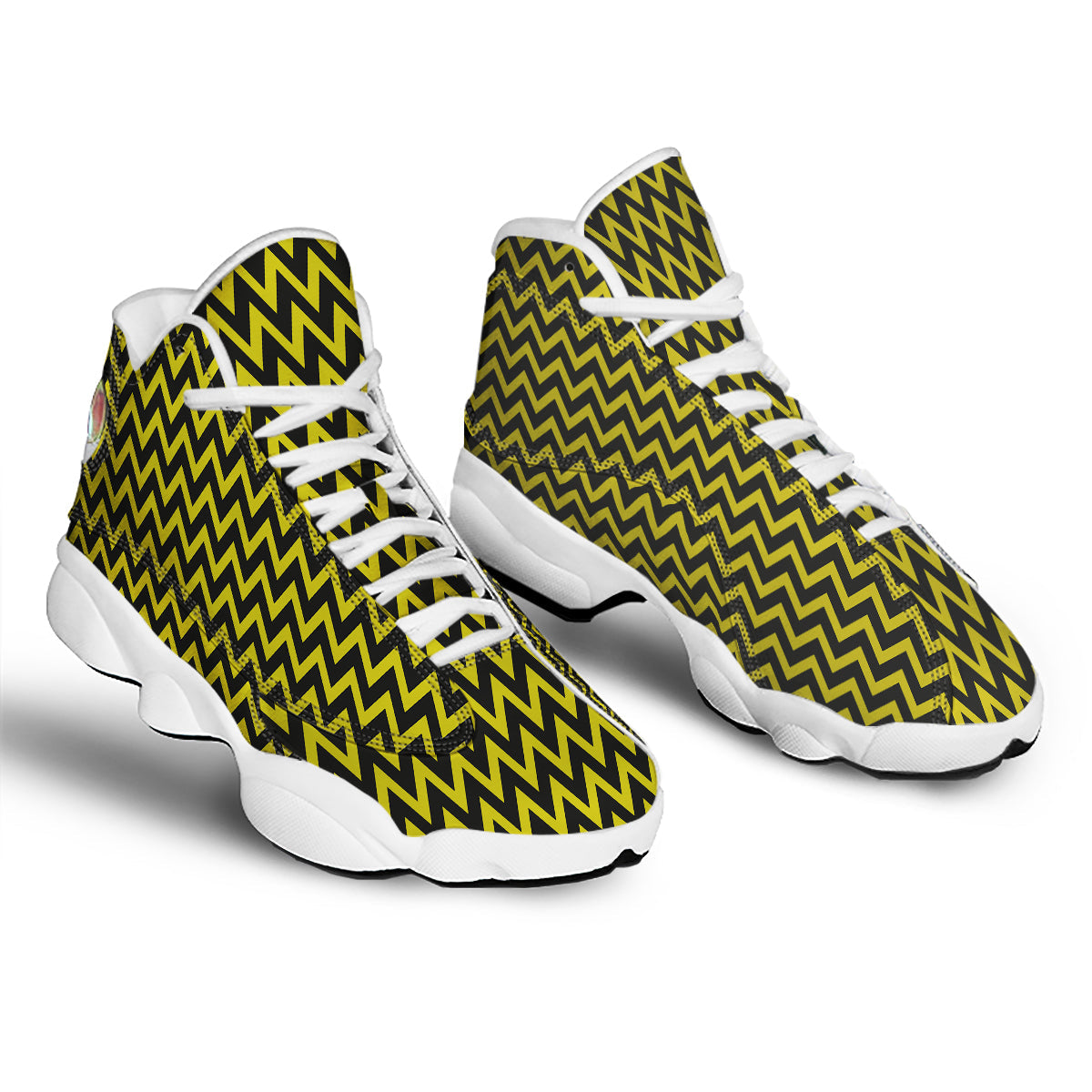 Looking for a unique basketball shoes? Check out our Zigzag Yellow And Black Print Pattern White Basketball Shoes at Grizzshopping. Our basketball shoes are handcrafted to the highest quality standards that custom made for you