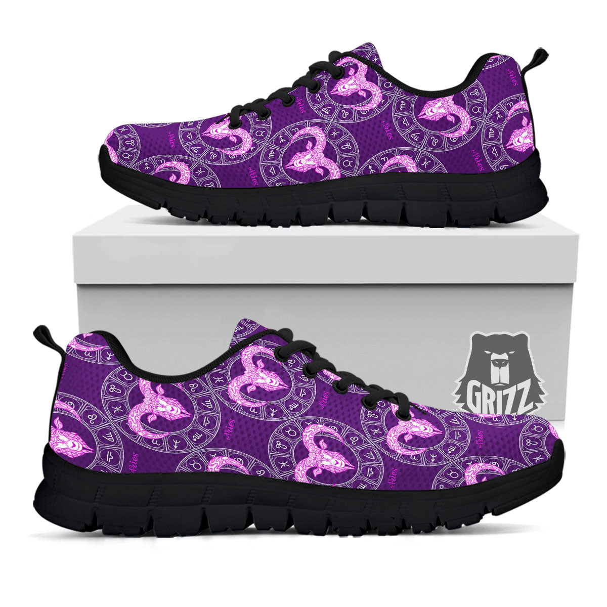 Zodiac Aries Purple Print Pattern Black Sneaker