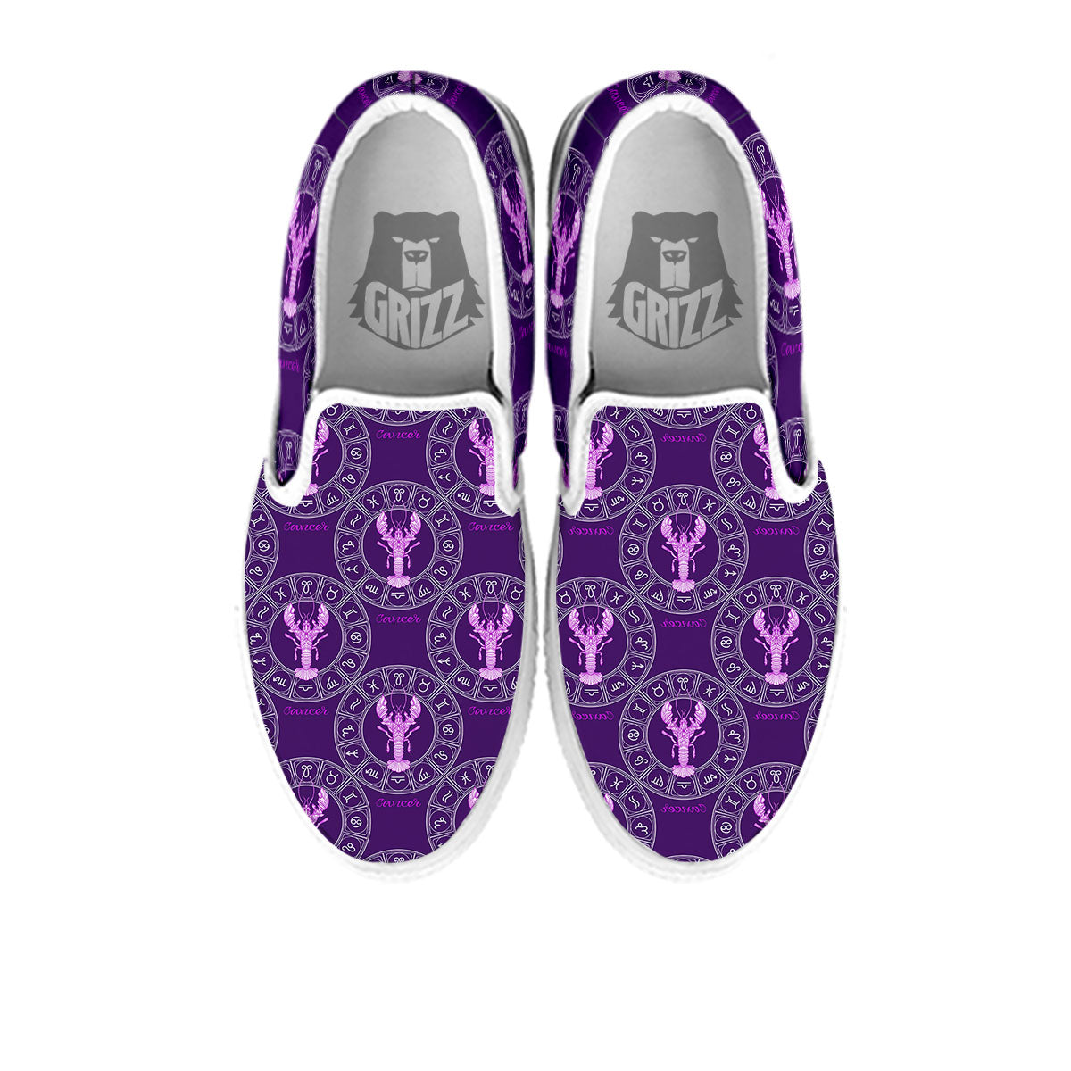 Zodiac Cancer Purple Print Pattern White Slip On Shoes