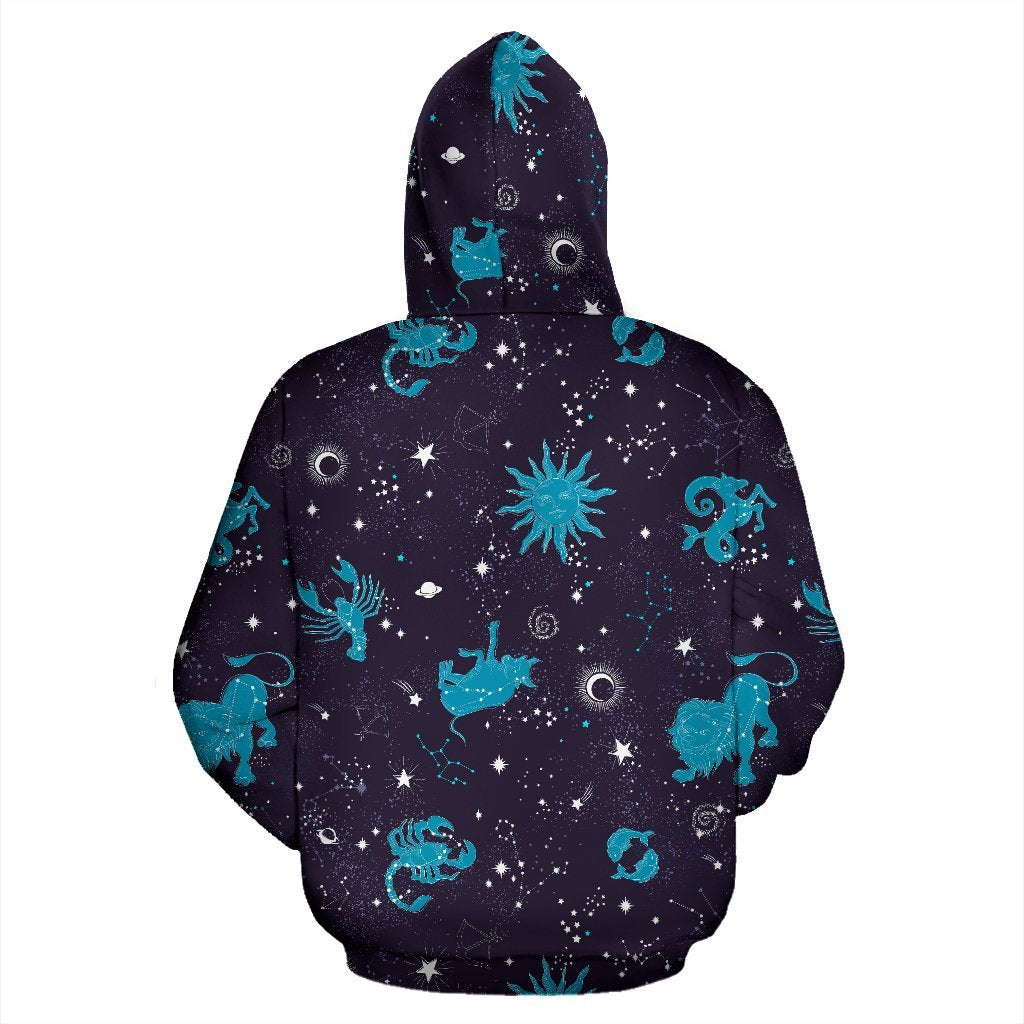 Zodiac Constellation Pattern Print Men Women Pullover Hoodie