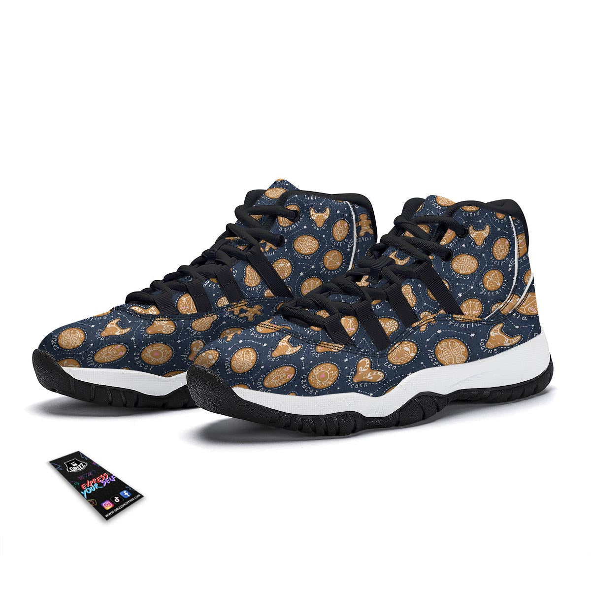 Zodiac Cookie Pattern Print Black Bball Shoes