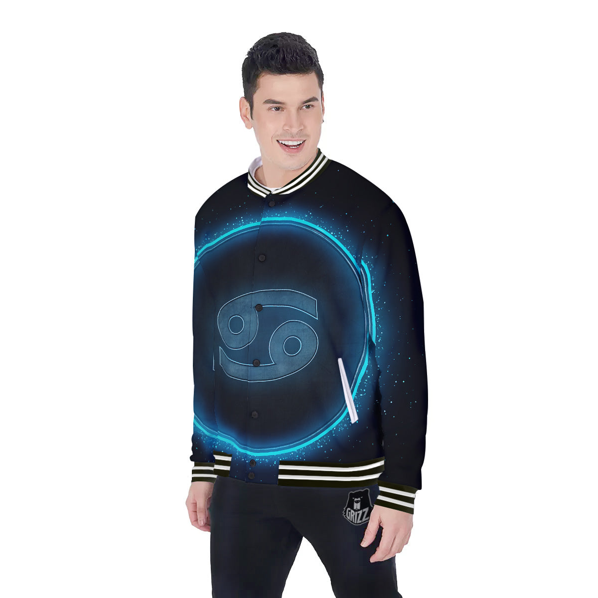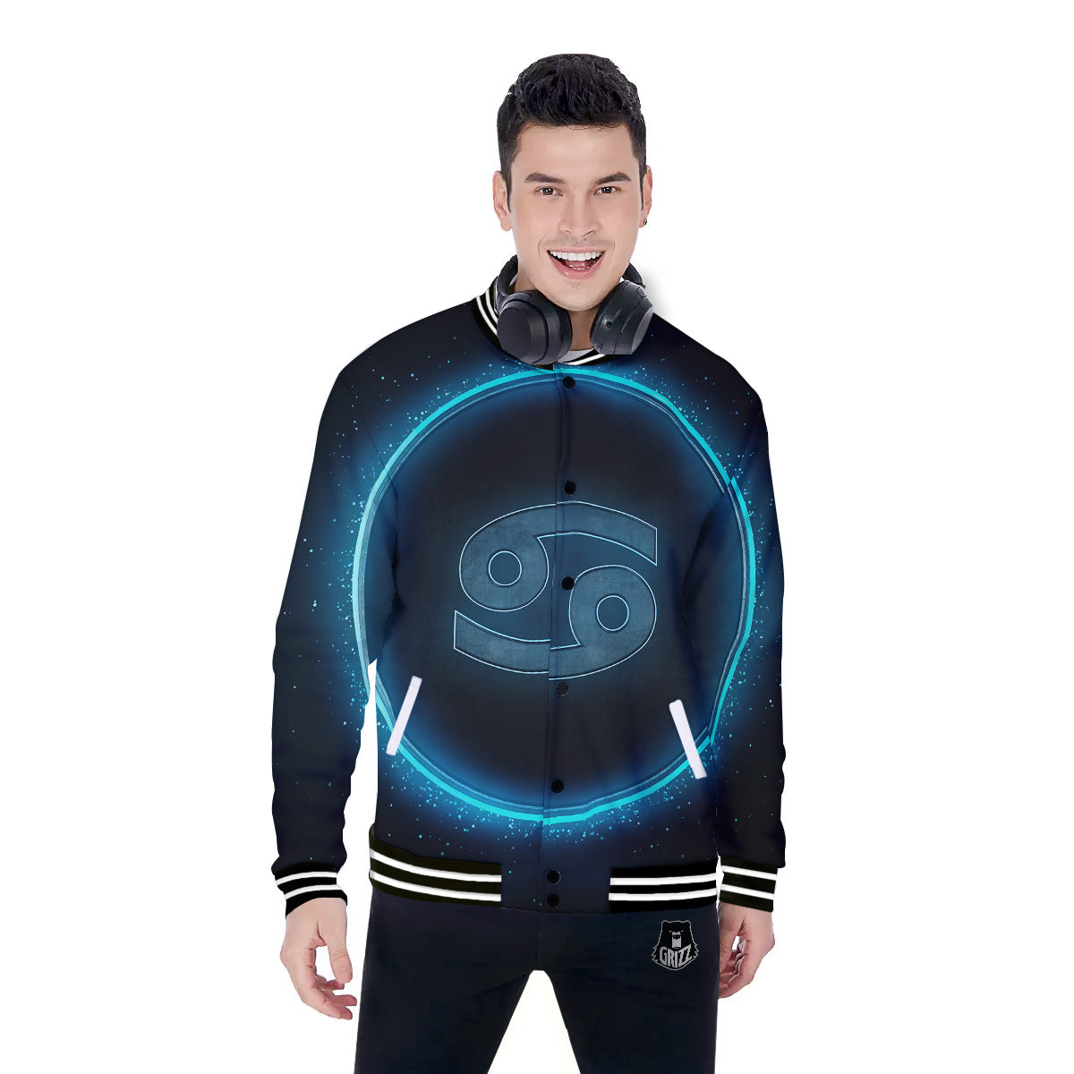 Zodiac Sign Blue Cancer Print Baseball Jacket