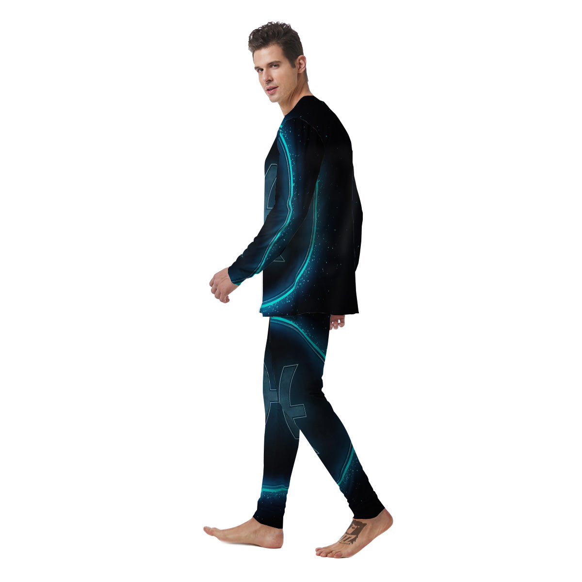 Zodiac Sign Blue Pisces Print Men's Pajamas