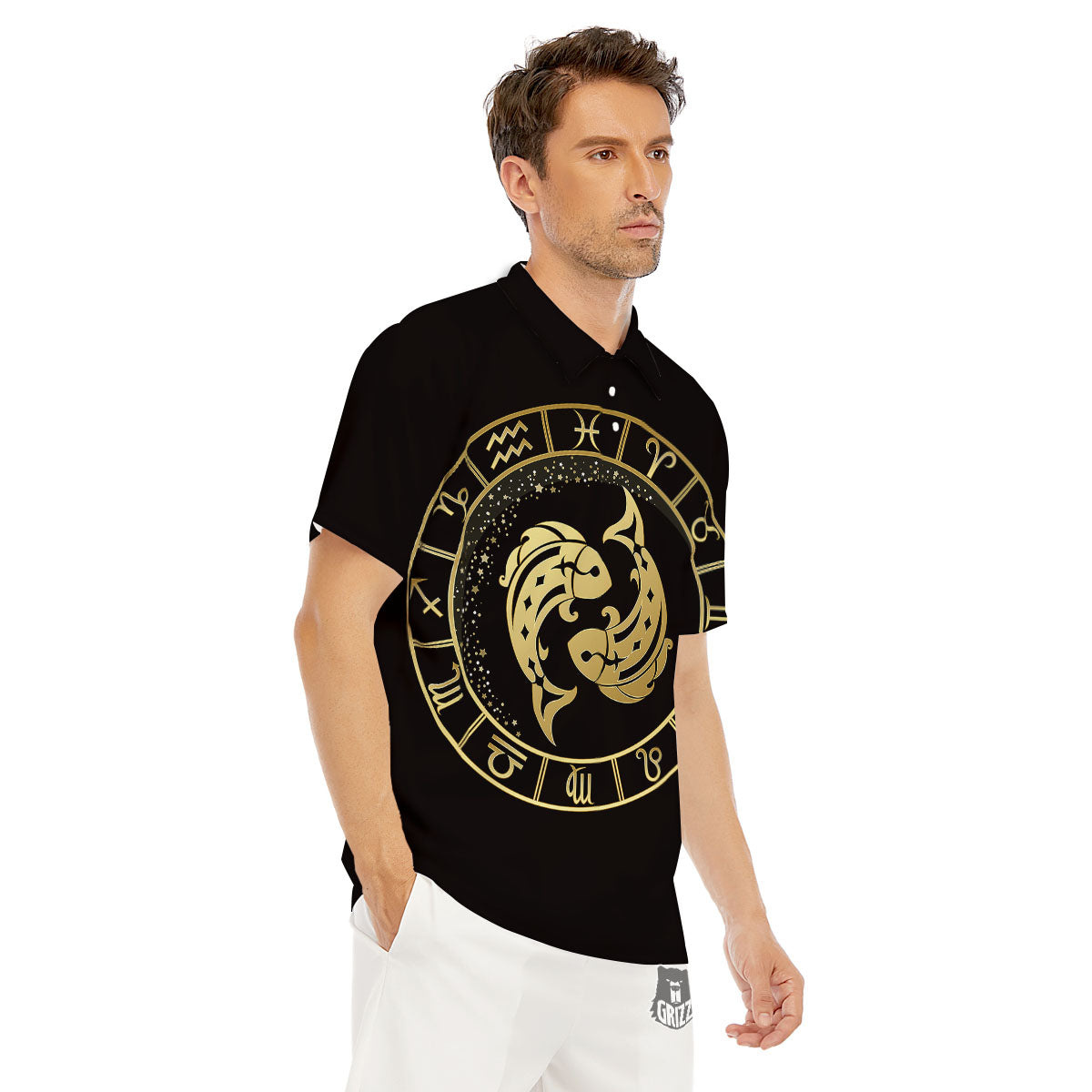 Zodiac Sign Golden Pisces Print Men's Golf Shirts