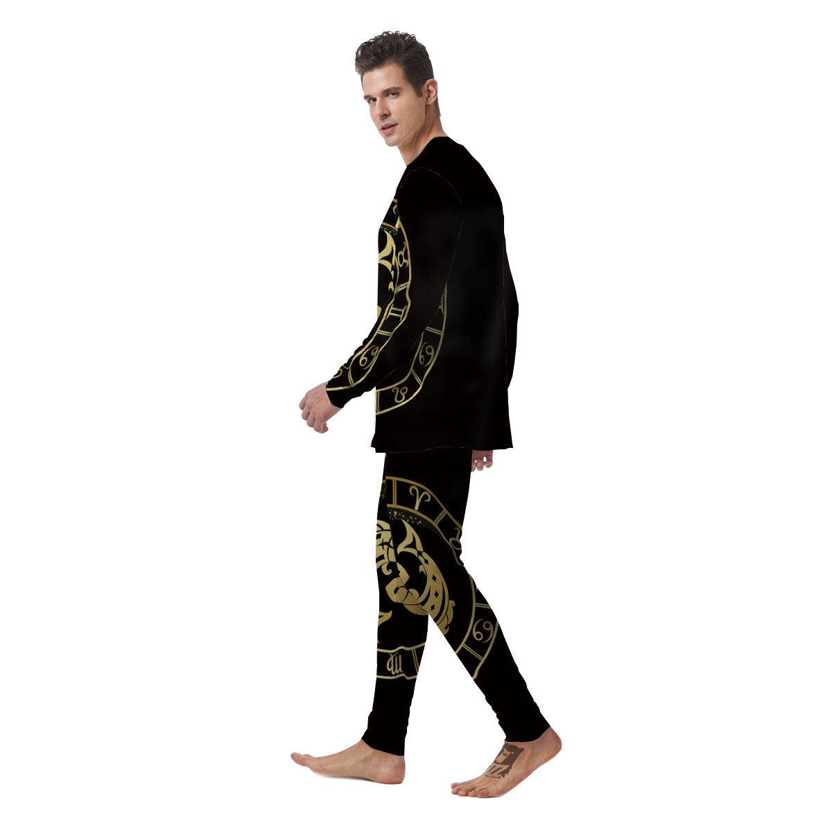 Zodiac Sign Golden Pisces Print Men's Pajamas
