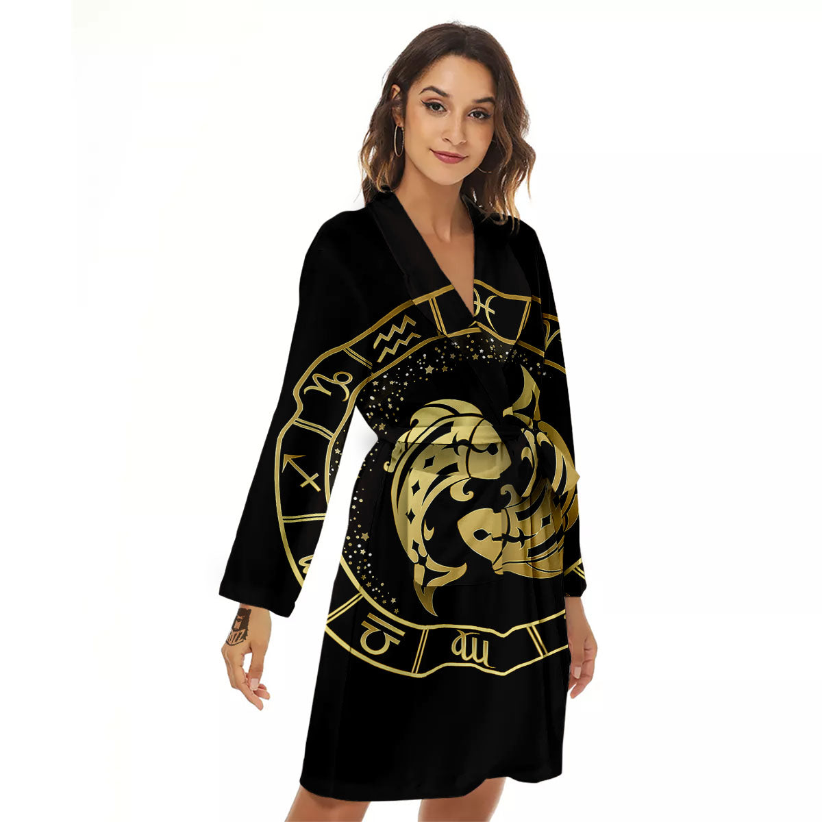 Looking for a unique robe? Check out our Zodiac Sign Golden Pisces Print Women's Robe at Grizzshopping. Our robe are handcrafted to the highest quality standards that custom made for you