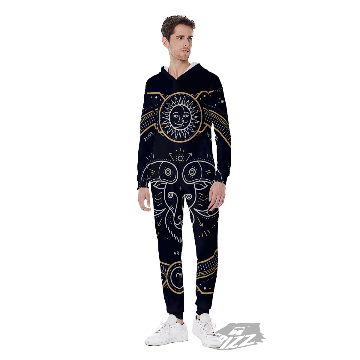 Zodiac Sign Vintage Aries Print Men's Jumpsuit