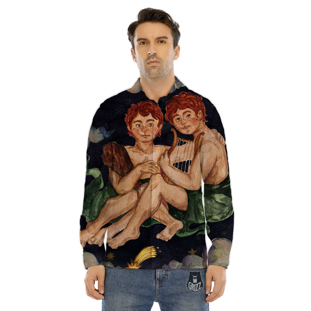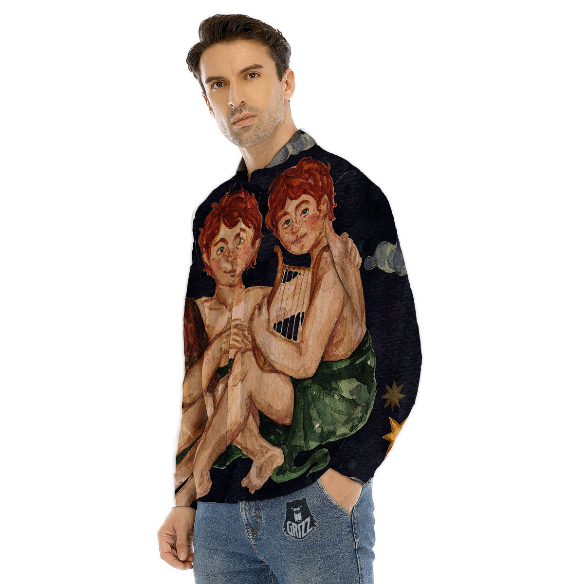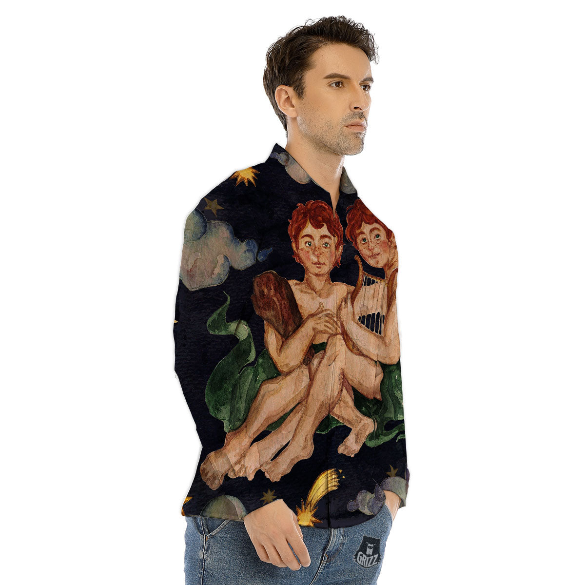 Zodiac Sign Watercolor Gemini Print Men's Dress Shirts
