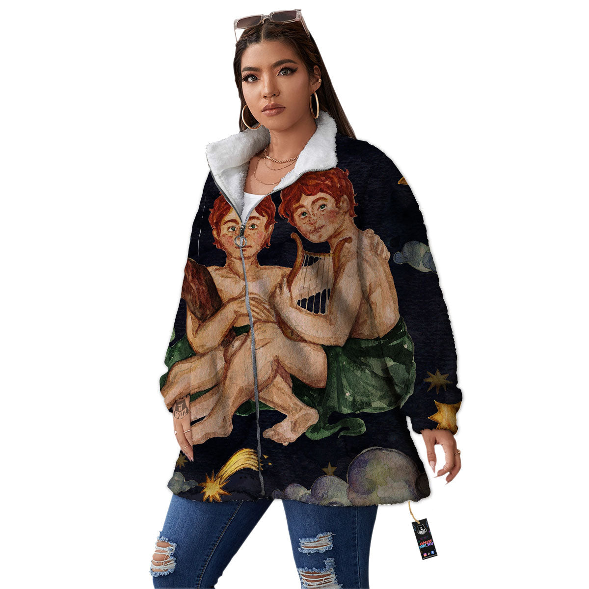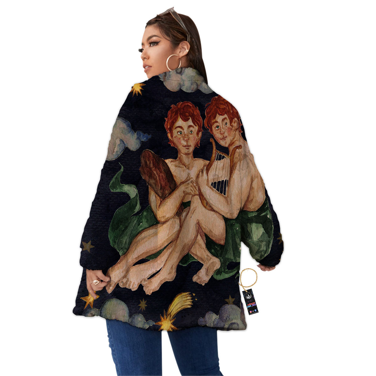 Zodiac Sign Watercolor Gemini Print Women's Sherpa Jacket