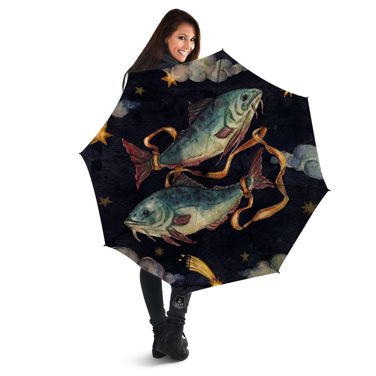 Zodiac Sign Watercolor Pisces Print Umbrella