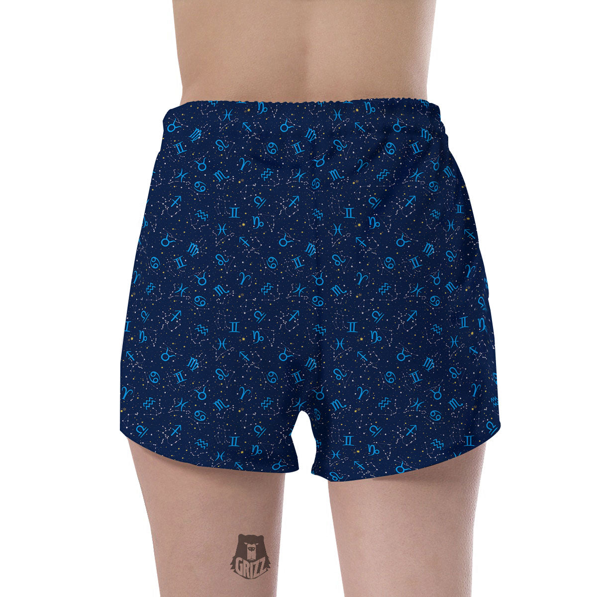 Zodiac Symbols Blue Print Pattern Women's Shorts
