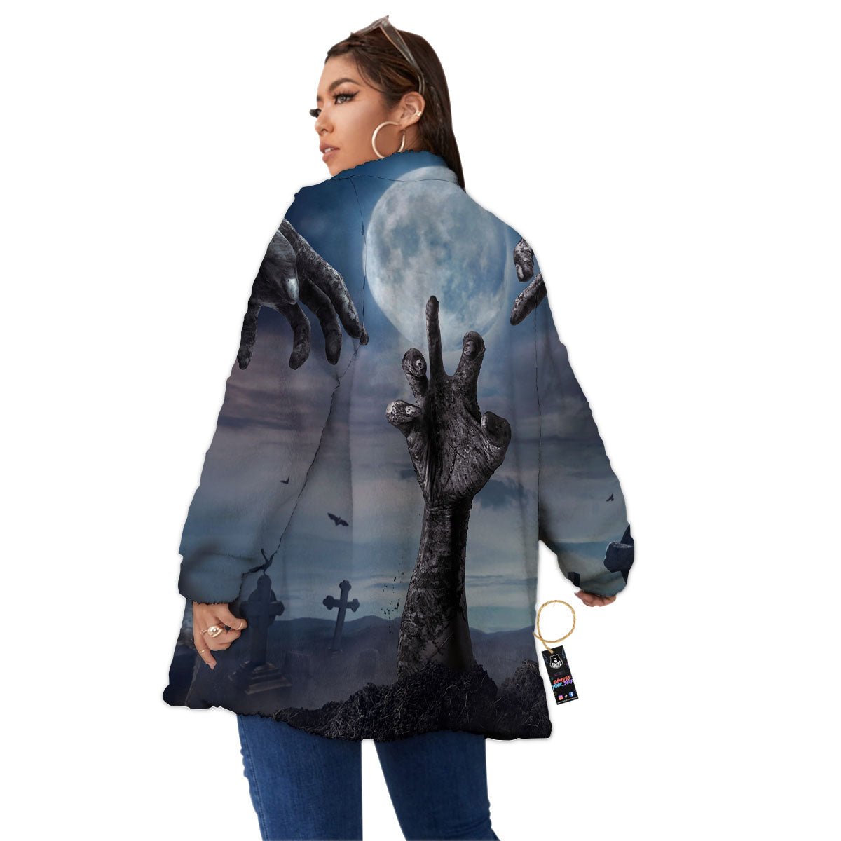Zombie Hands Halloween Print Women's Sherpa Jacket